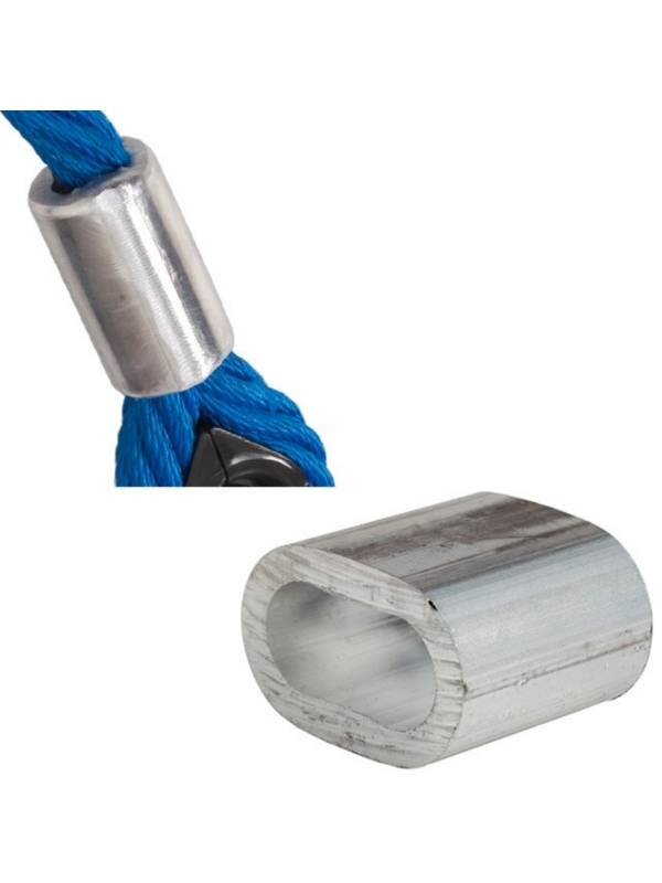 Алюминиевое кольцо используется при необходимости создания прочного соединения двух армированных канатов. Для надежной фиксации применяется металлический или пластиковый коуш.