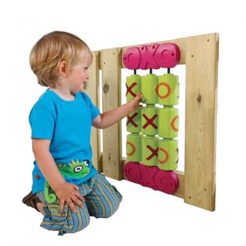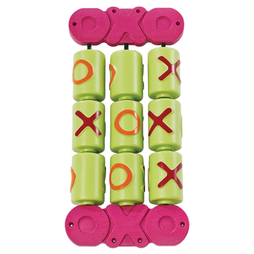 Игра «Крестики-нолики» для детей в возрасте от 4 до 10 лет. В комплекте три вертикальных цилиндра, на каждом из которых по три маленьких однотонных бочонка с нарисованными крестиками и ноликами. Конструкция фиксируется на деревянной или металлической раме.