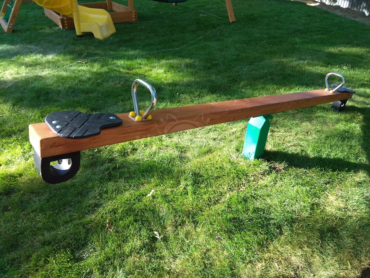 Качалка-балансир предназначена для детей от 5 лет. Качалка выполнена из массива древесины, клееный брус, сечением 140х90 мм. Каркас под качалку выполнен из металлической трубы сечением 120х120 мм с балансирующим элементом. Поручни изготовлены из металлической трубы и покрыты полимерной краской. Сидения выполнены из HDPE пластика (не скользящего материала). Деревянные детали тщательно отшлифованы и покрыты двумя слоями пропитки. Качалку-балансир необходимо закрепить путем бетонирования опоры. Качалка-балансир предназначена для использования в дворовых территориях на открытом воздухе.
